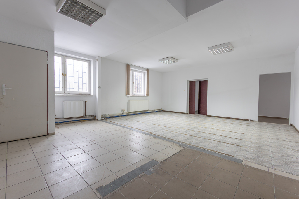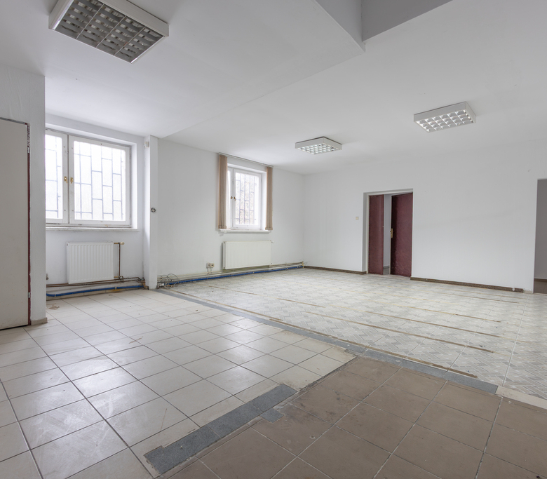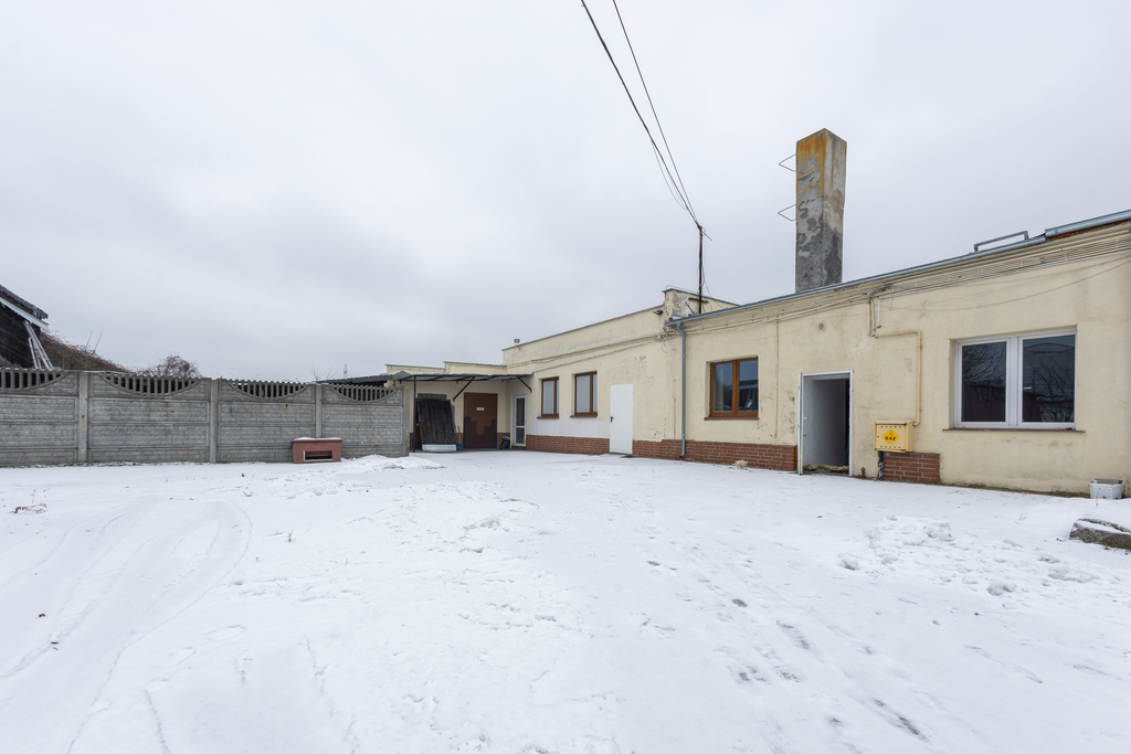 Część budynku została przekształcona na funkcję mieszkalną, która z powodzeniem może pełnić również rolę biura lub zaplecza administracyjnego dla prowadzonej działalności.