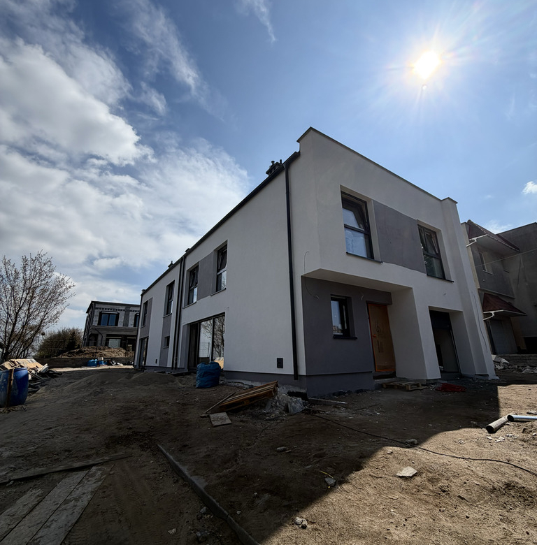 Dom w zabudowie bliźniaczej. Zbudowany w oparciu o autorski projekt, z dbałością o detale i jakość. 130,21 m² przestrzeni użytkowej, rozłożonej funkcjonalnie na dwóch poziomach.