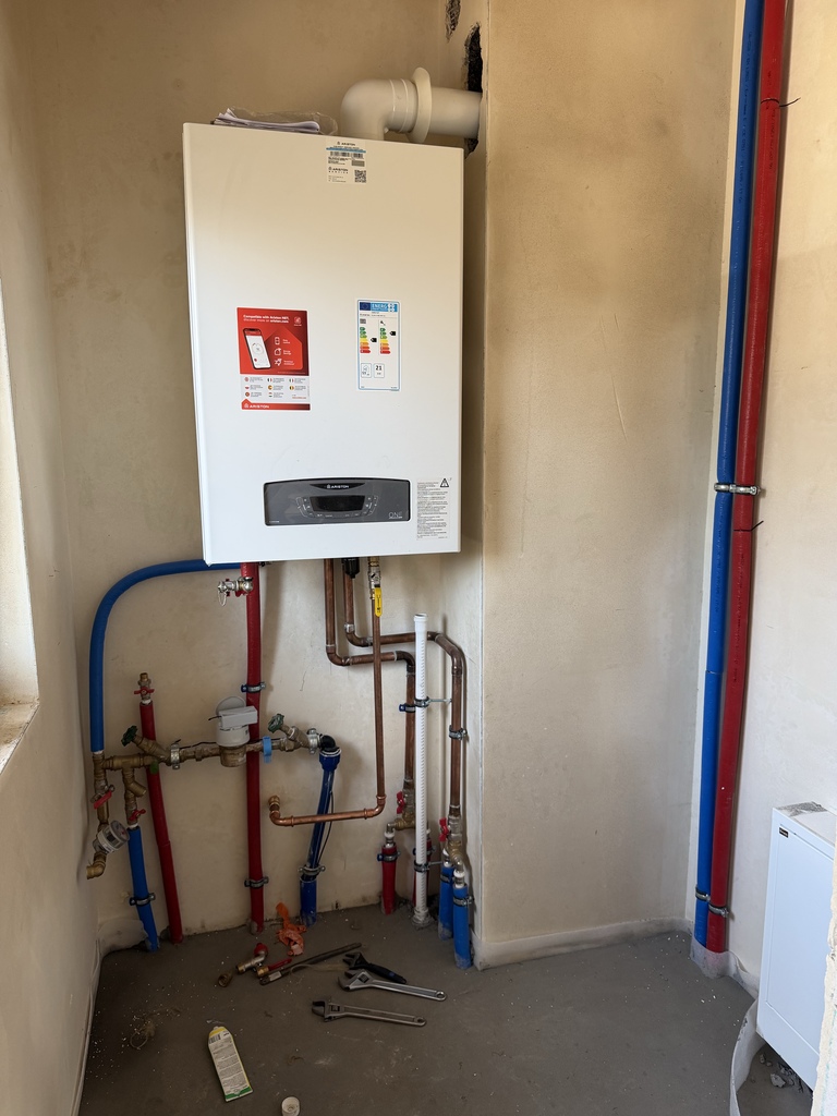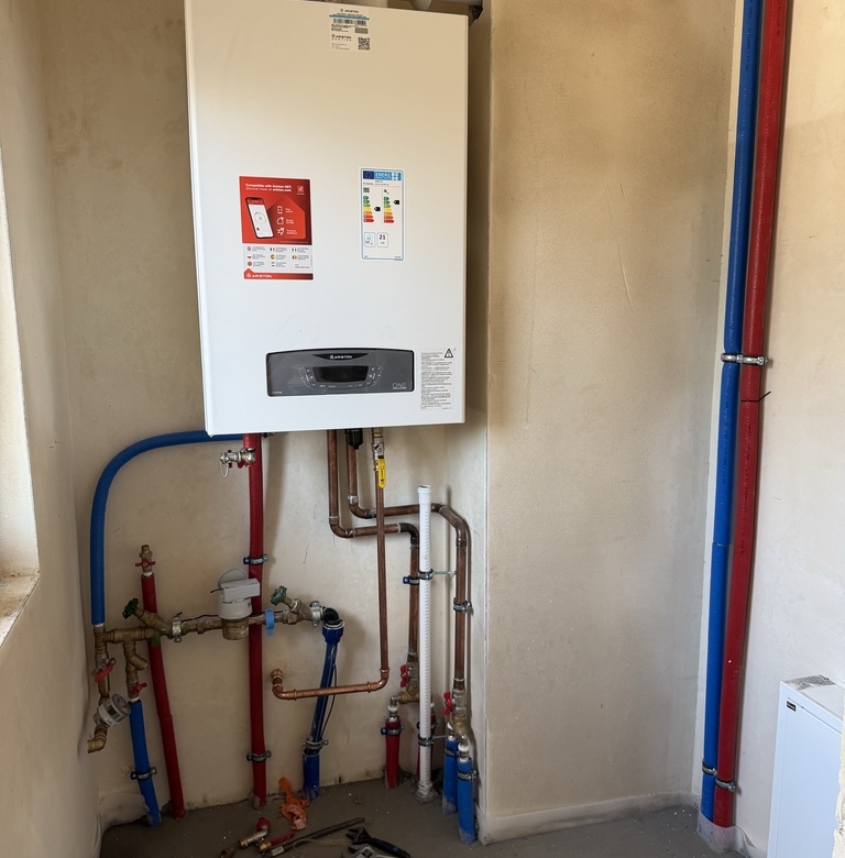 – Instalacja grzewcza – ogrzewanie podłogowe w całym budynku w oparciu o kocioł gazowy kondensacyjny dwufunkcyjny