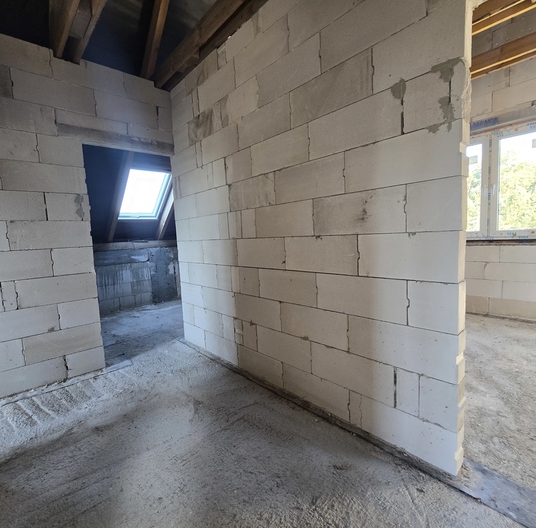 Dom uzyskał pozwolenie na budowę w 2021, jego obecny stan to surowy zamknięty do wykończenia przez nowonabywcę.
