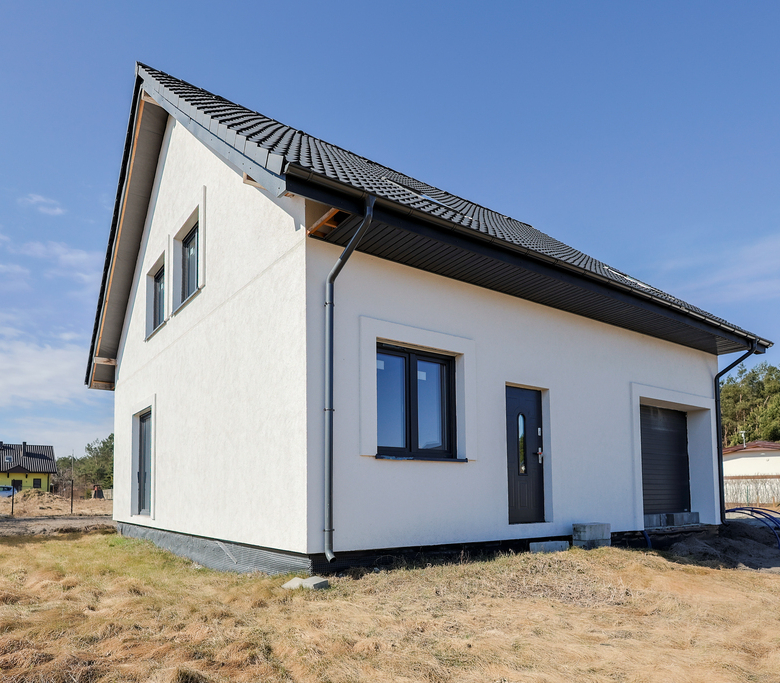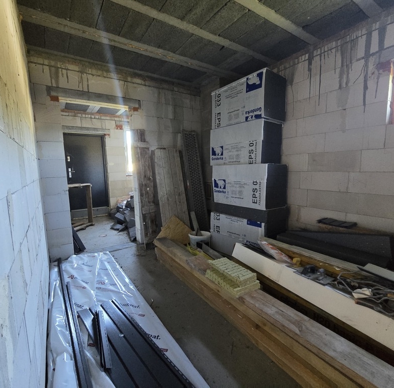 Budynek ocieplony, z wykonaną elewacją. Budynek zewnątrz gotowy.