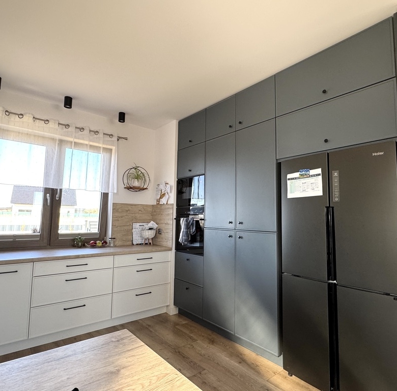 - nowoczesny aneks kuchenny z wysokiej klasy zabudową od stolarza