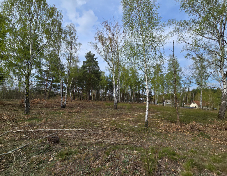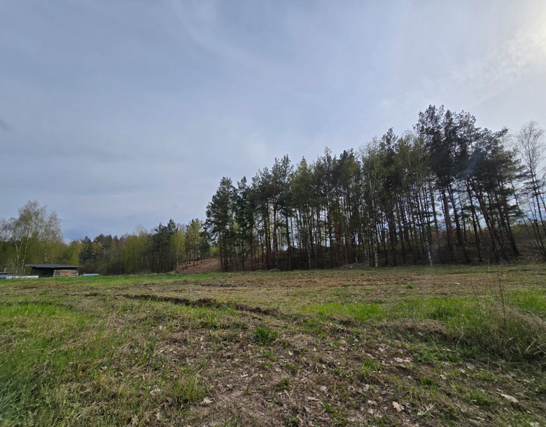 Powierzchnia i kształt działki Działka płaska, częściowo zalesiona i niezabudowana. Obecnie czekamy na wycinkę, prace porządkowe terenu. W skład działek wchodzi kwadrat o wymiarach 79 m szerokości frontu i długości 69 m.
