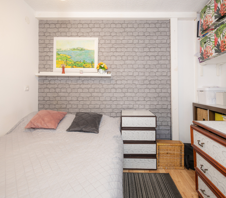 - Wydzielony pokój sypialniany, który w razie potrzeby można przekształcić np. w spiżarnię. Z dużym łóżkiem oraz szafkami do przechowywania rzeczy.