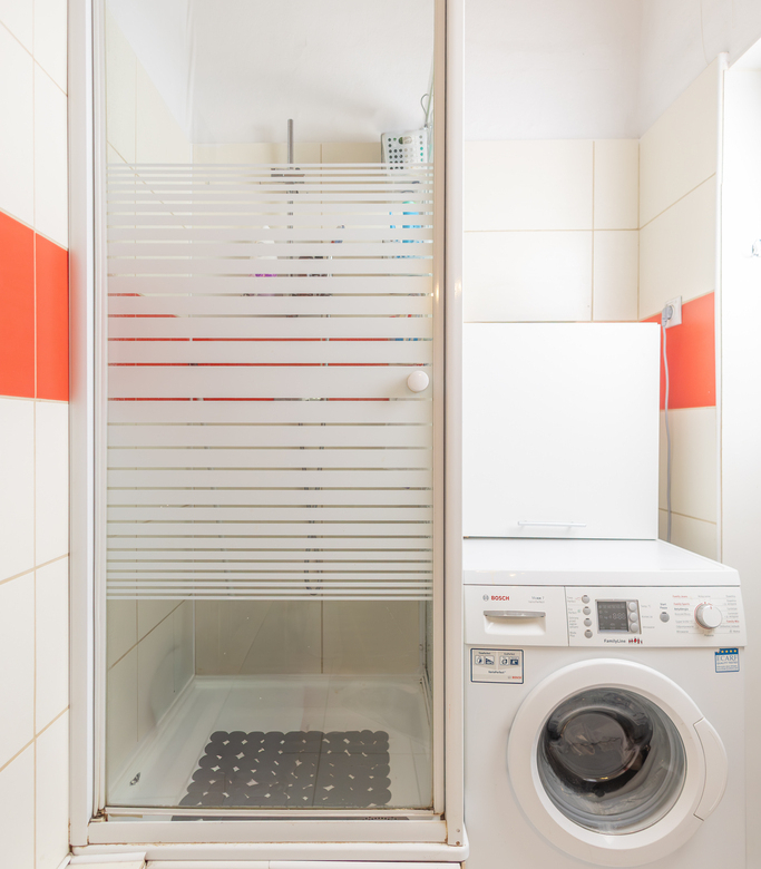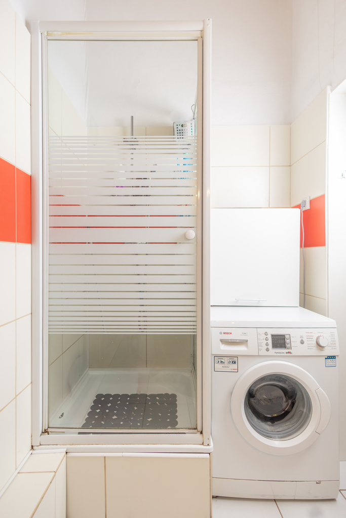 - Łazienka – funkcjonalna i zaskakująco przestronna z prysznicem i pralką.
