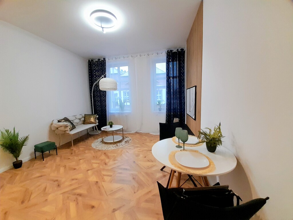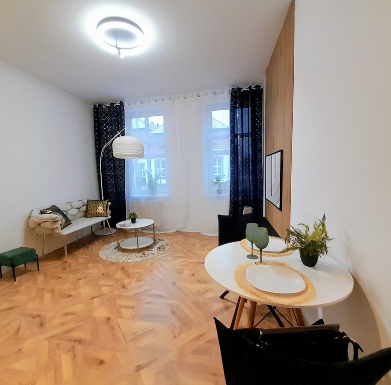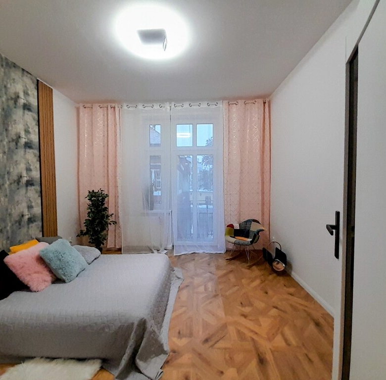 Mieszkanie o pow. 54 m2 położone na II piętrze w pięknie odrestaurowanej kamienicy z zachowaną oryginalną stolarką drzwiową i okienną. W całym budynku została wymieniona instalacja elektryczna.
