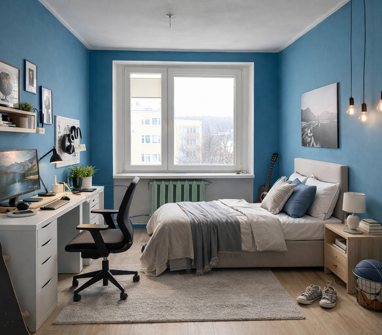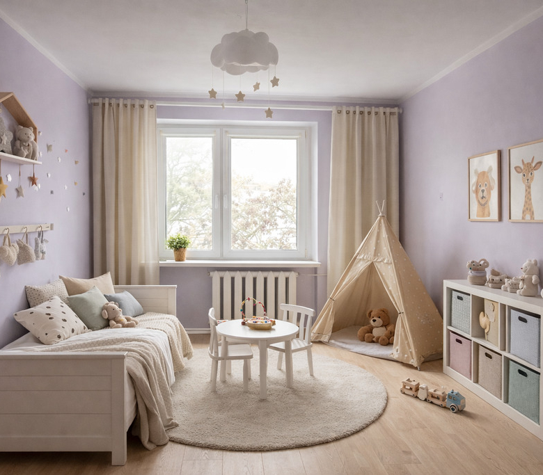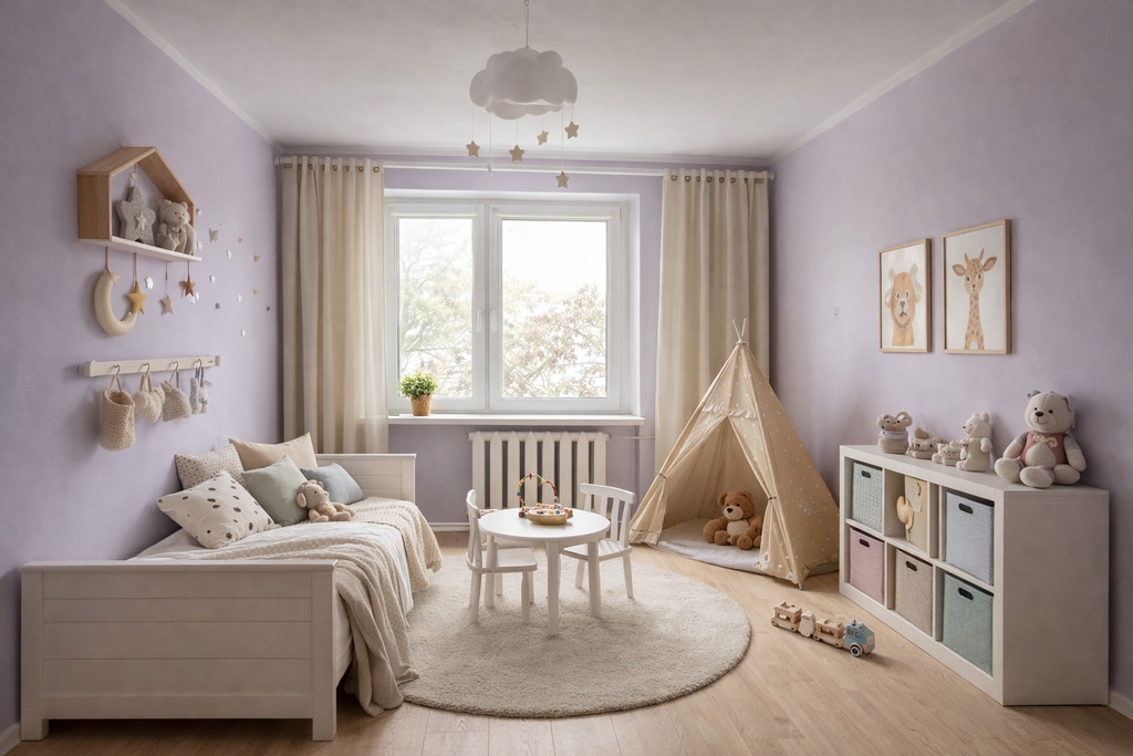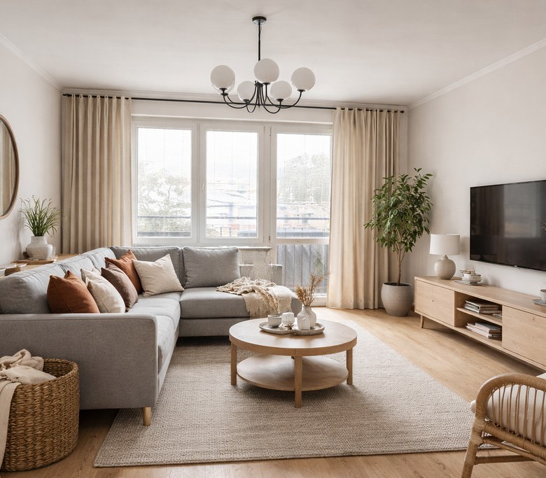 Pierwsze trzy zdjęcia to wizualizacje przedstawiające mieszkanie w nowej aranżacji.