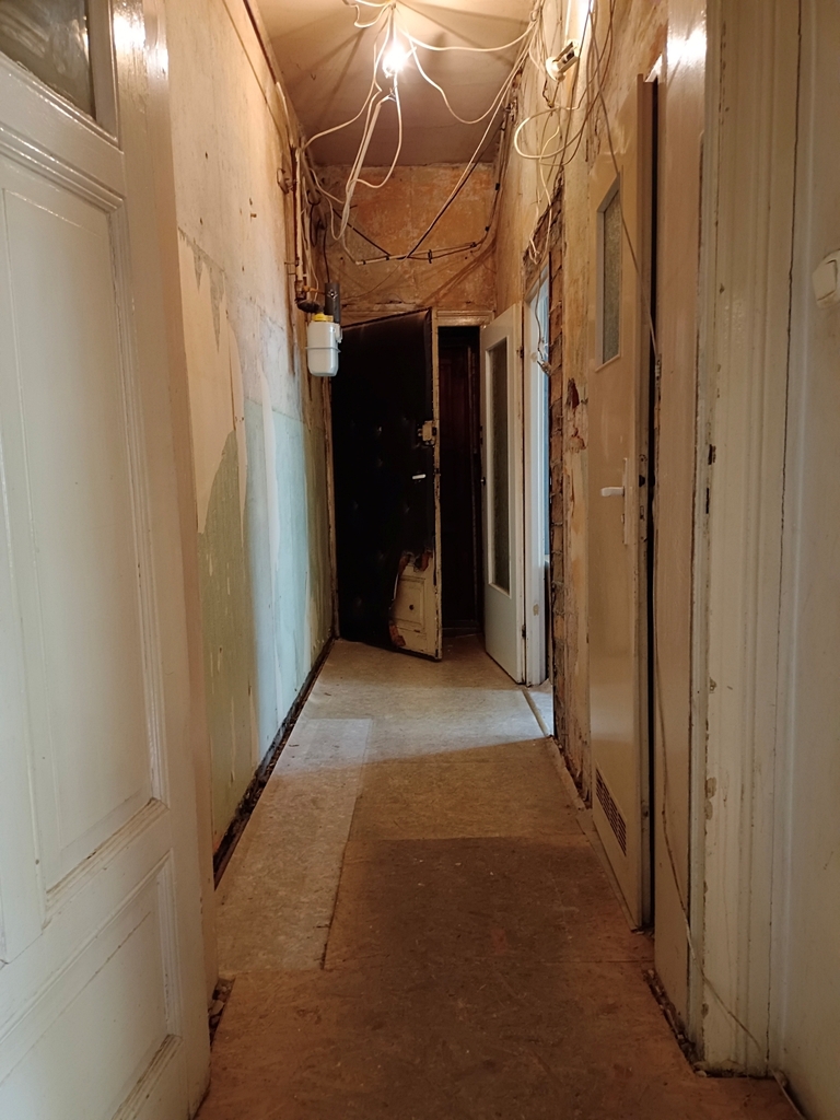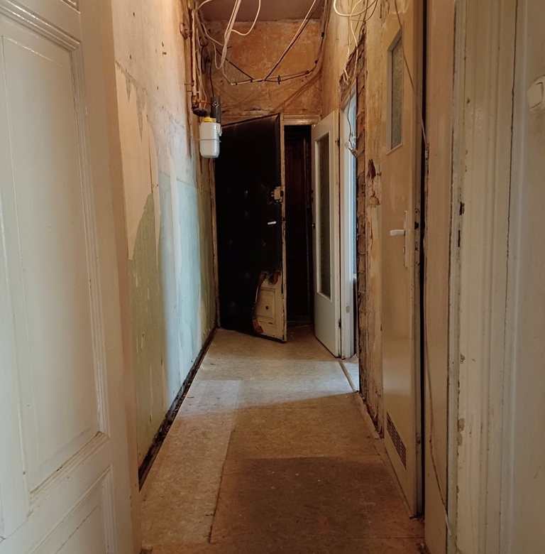 - ściany: tynki wapienno-piaskowe / częściowo tapety
