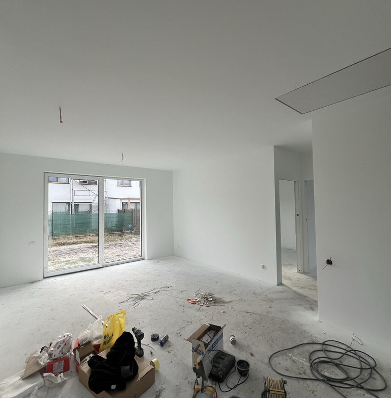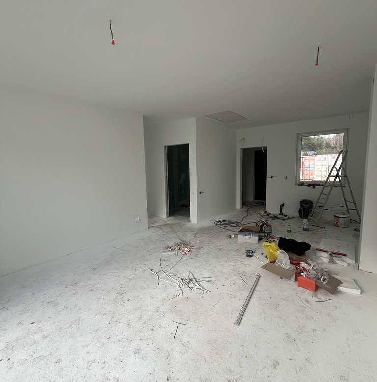 – Podłogi: wylewki cementowe (w jednym poziomie, zatarte na gładko)