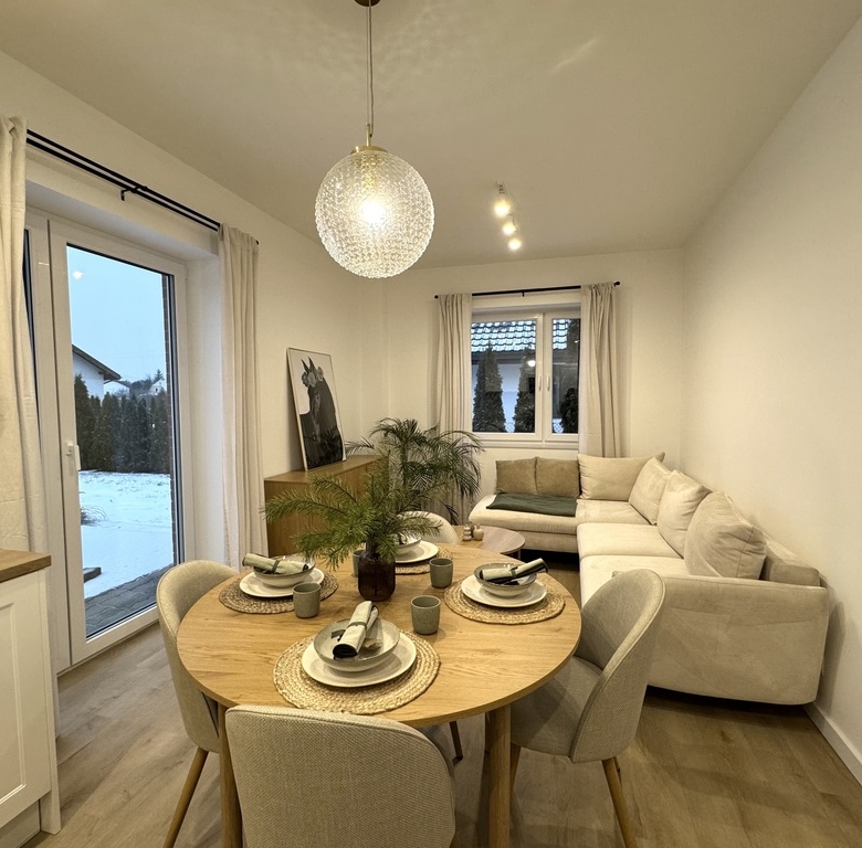 Idealna propozycja dla singla, pary lub rodziny 2+1, a także jako alternatywa dla mieszkania w mieście.Dom- funkcjonalny i przemyślany układ: - salon z aneksem kuchennym ok. 19,5 m²,
