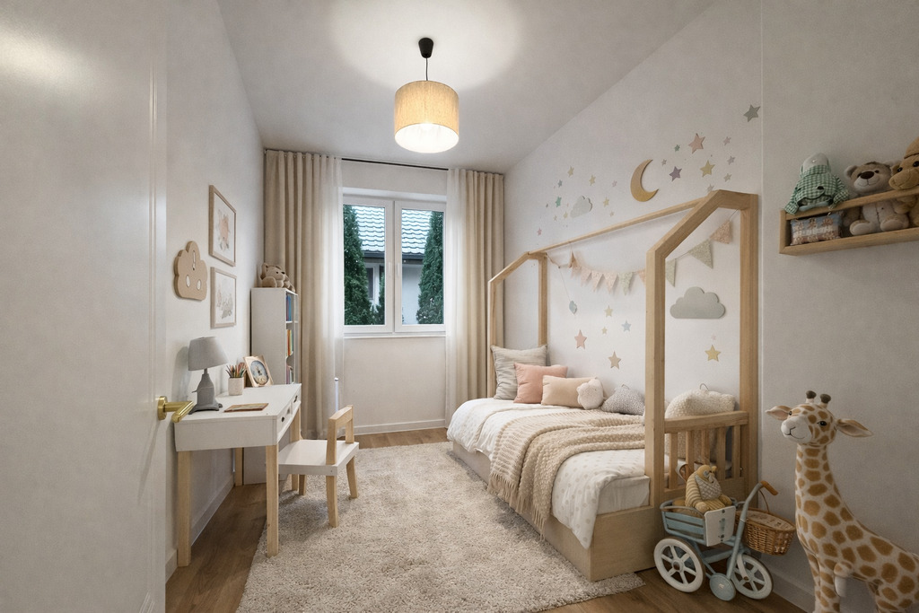 - dodatkowy pokój ok. 7 m² (biuro / garderoba / pokój dziecka),