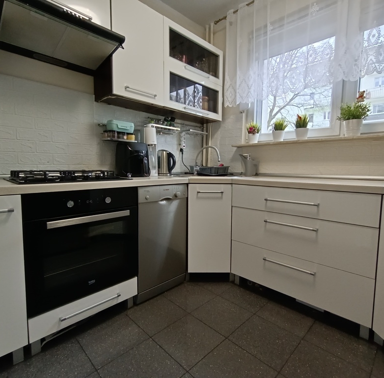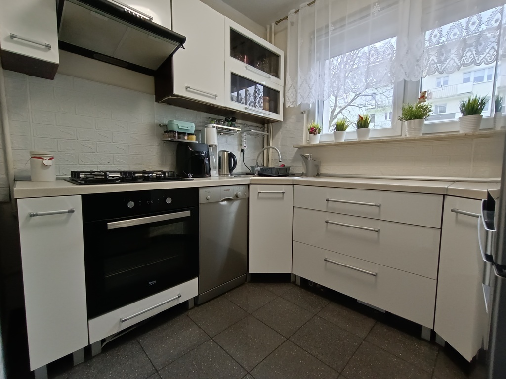 Wyposażenie mieszkania: - W kuchni takie sprzęty jak: zmywarka, płyta gazowa, okap, piekarnik, lodówka,. Przestrzeń została maksymalnie wykorzystana, m.in. poprzez zastosowanie dodatkowych szaf do przechowywania produktów sypkich.