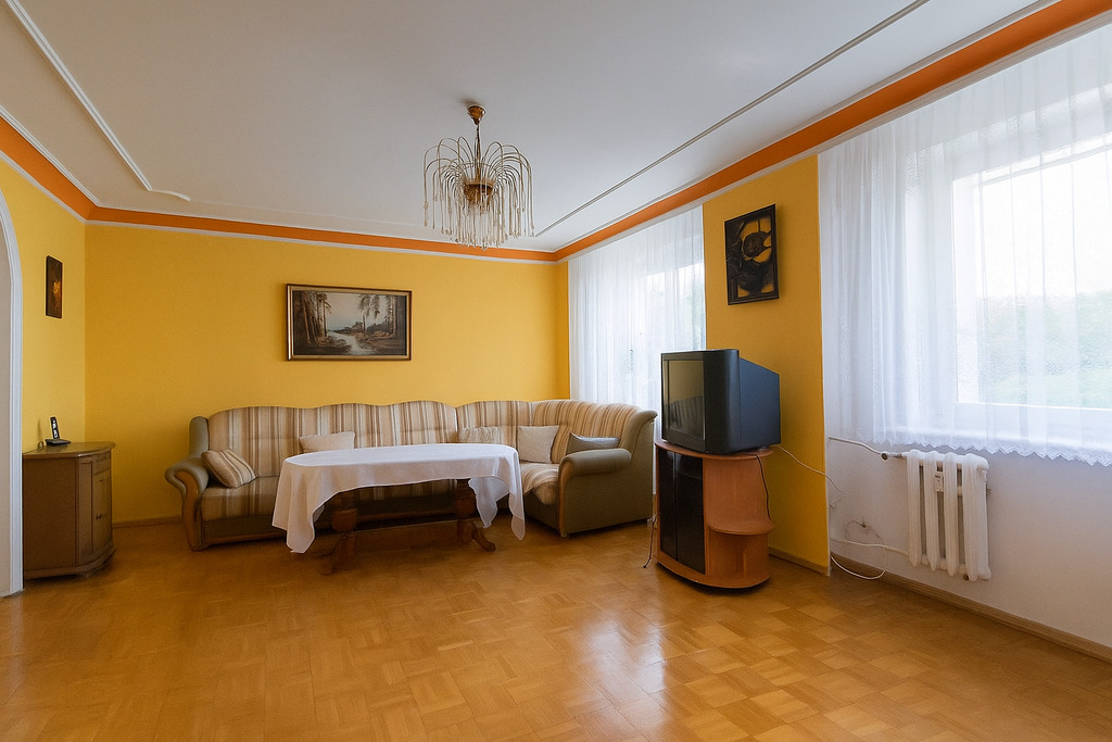 -Duży salon, z którego można wydzielić dodatkowo 2 sypialnie