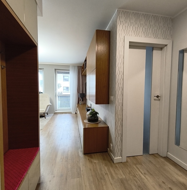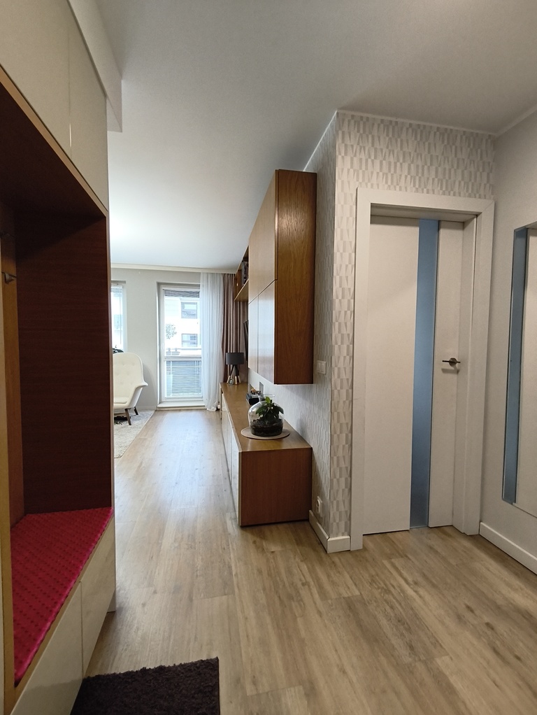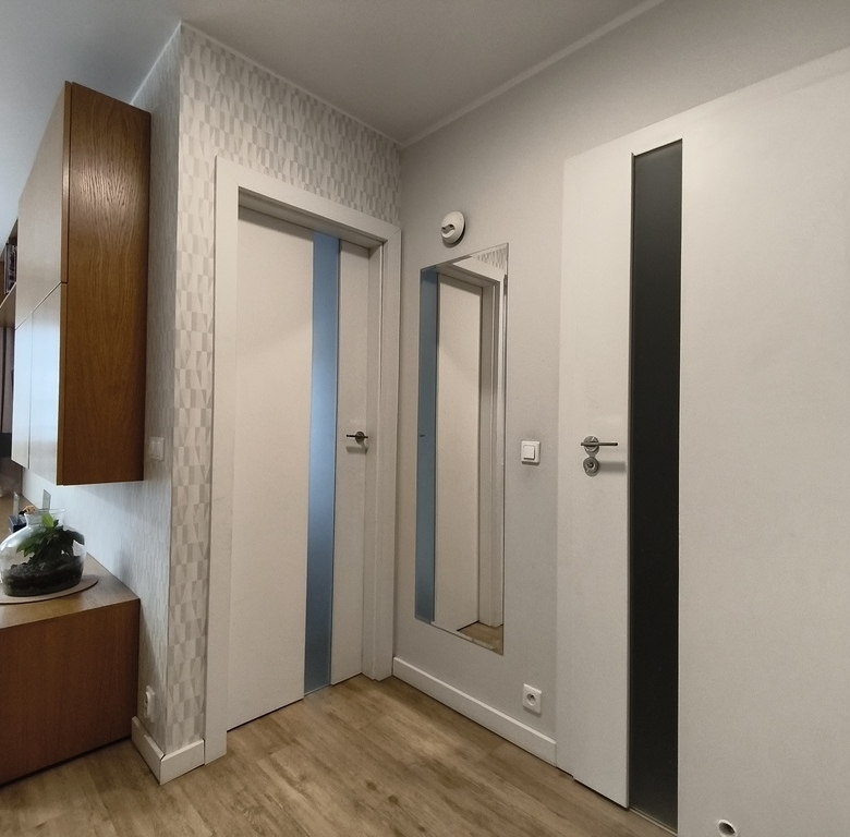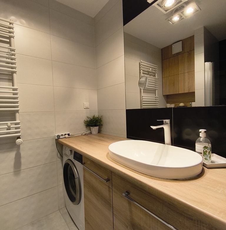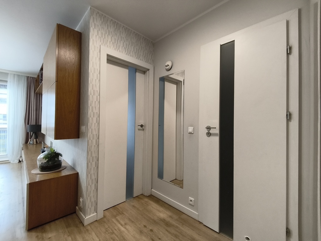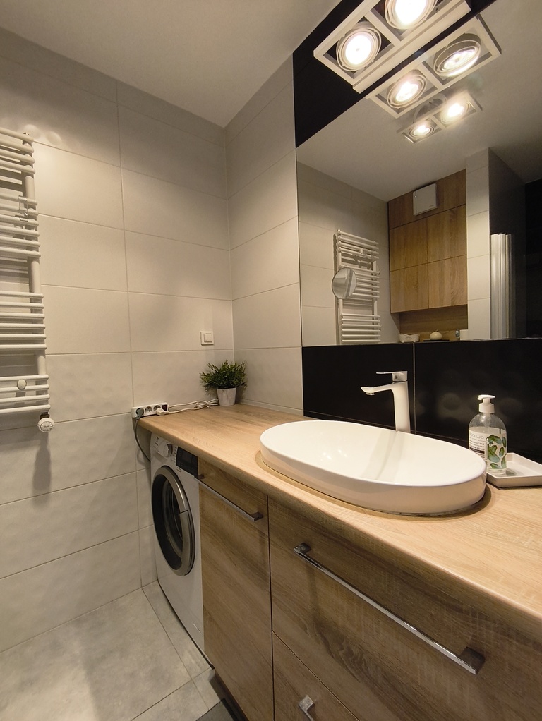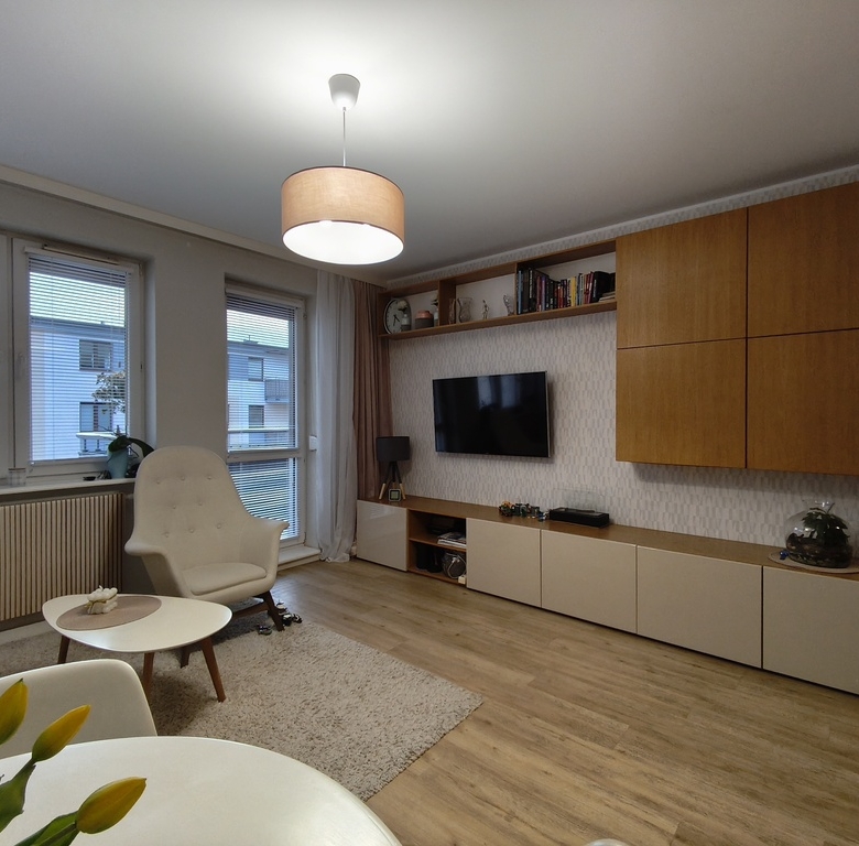 Mieszkanie zostało wykończone z dbałością o detale oraz funkcjonalne wykorzystanie przestrzeni.