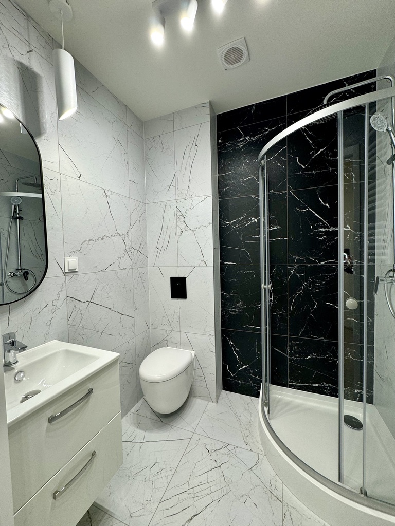 • łazienki wykończonej w wysokim standardzie, po generalnym remoncie,