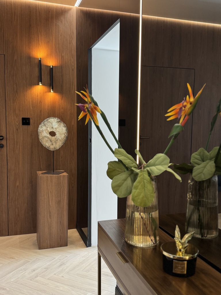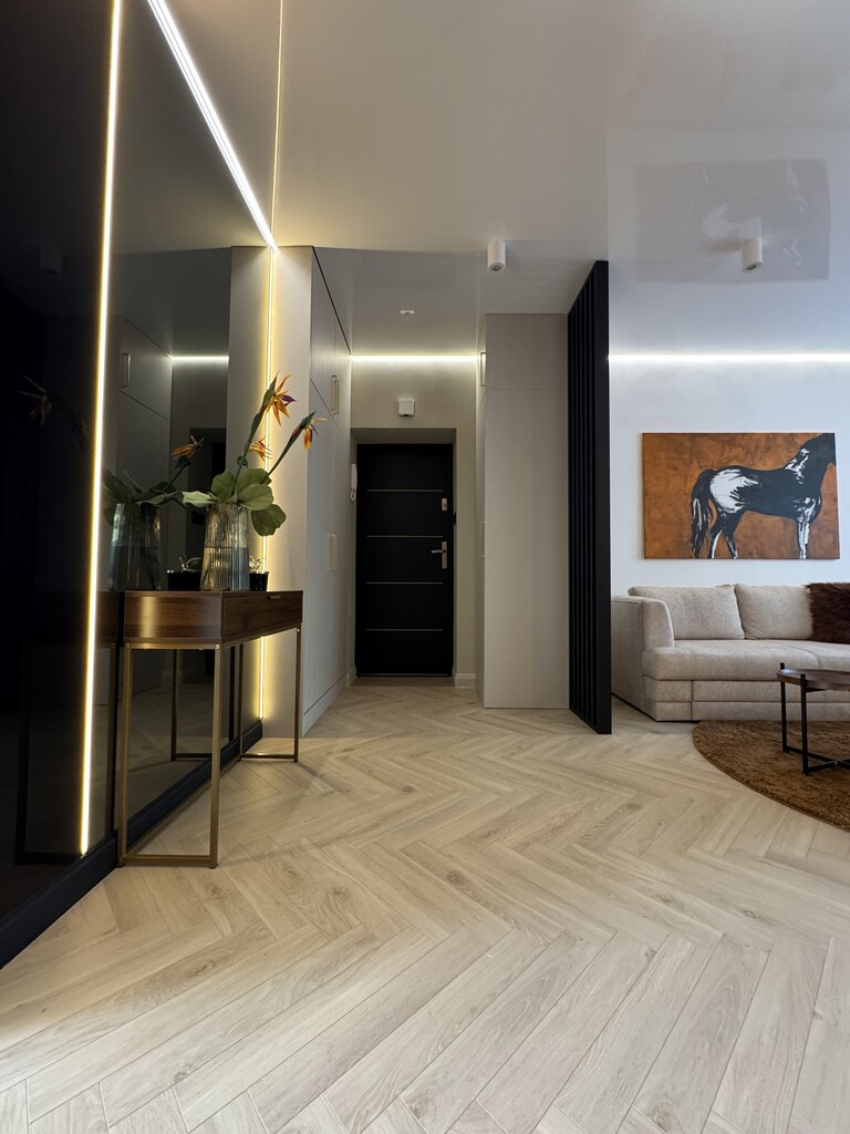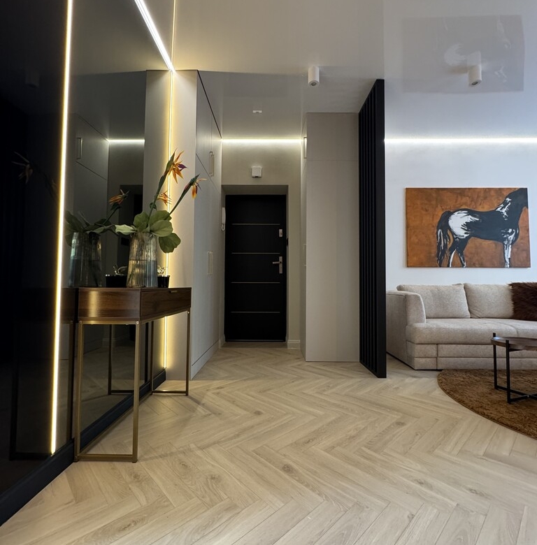Mieszkanie zostało zaprojektowane przez projektanta wnętrz w stylu New modern i w jego skład wchodzi: