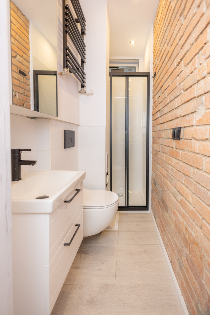 - Łazienka – wykończona nowoczesną armaturą, funkcjonalna i elegancka.