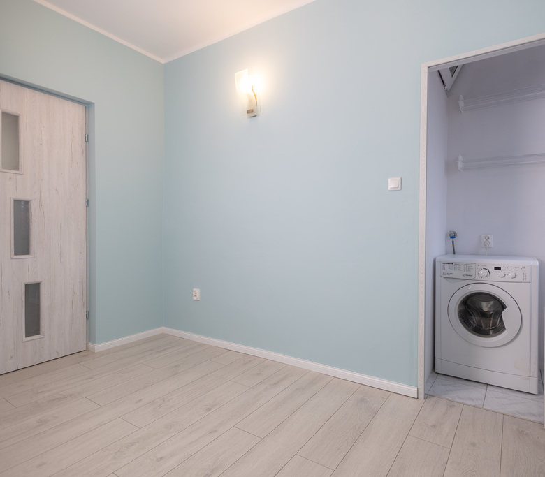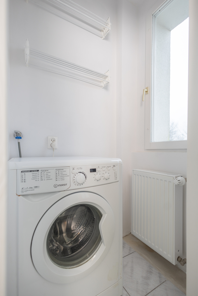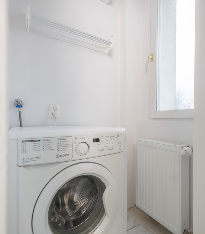 - Sypialnia – przytulna, ustawna zapewnia pełen komfort z osobnym pomieszczeniem na pralkę z dwiema suszarkami ściennymi.
